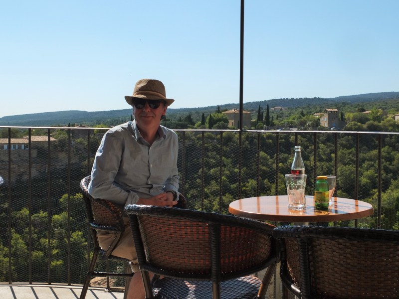 Dr B in the Gordes balcony café