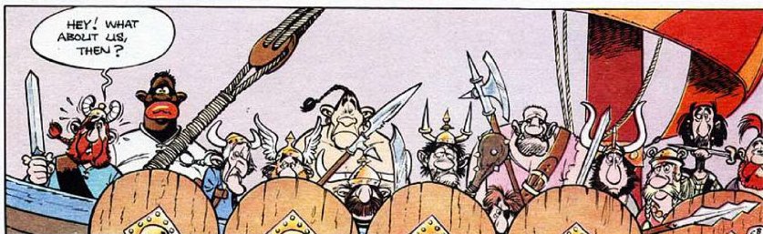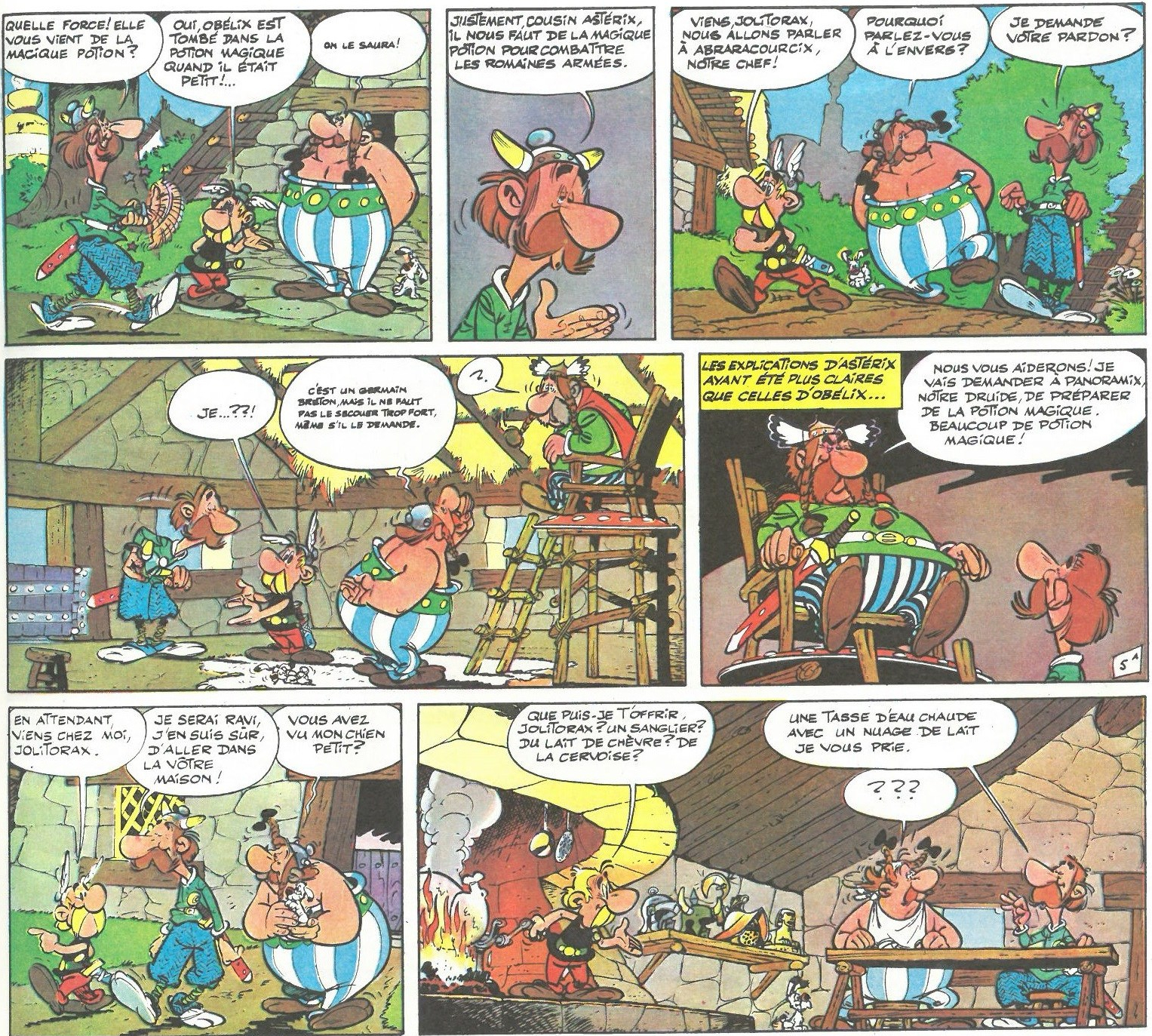 So I consider it a mistake to dismiss Tintin out of hand without considering the extent of Hergé’s artistic achievement. Nor do I wish to denigrate Uderzo’s artistry: in fact, I find it very difficult to compare Asterix and Tintin at all. But I’ve had a go here under a few different headings, because if nothing else, the observations below will help demonstrate why these two old favourites are united at number two in my top five.
